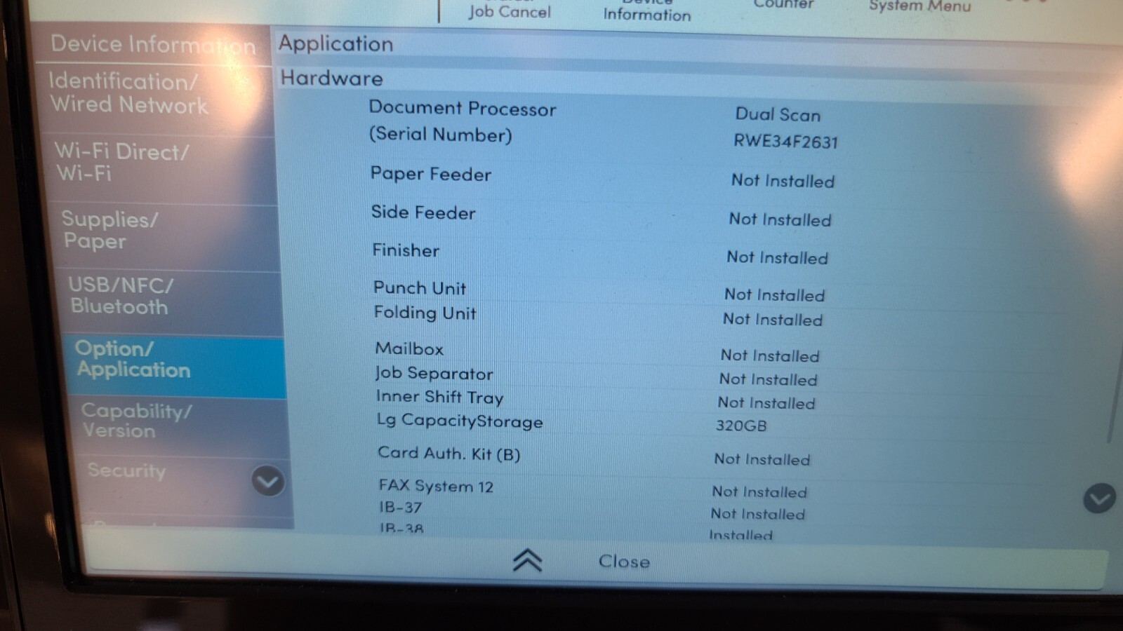 It includes the large capacity storage (320GB), IB-38 wi-fi interface, DP-7160 dual scan document processor.