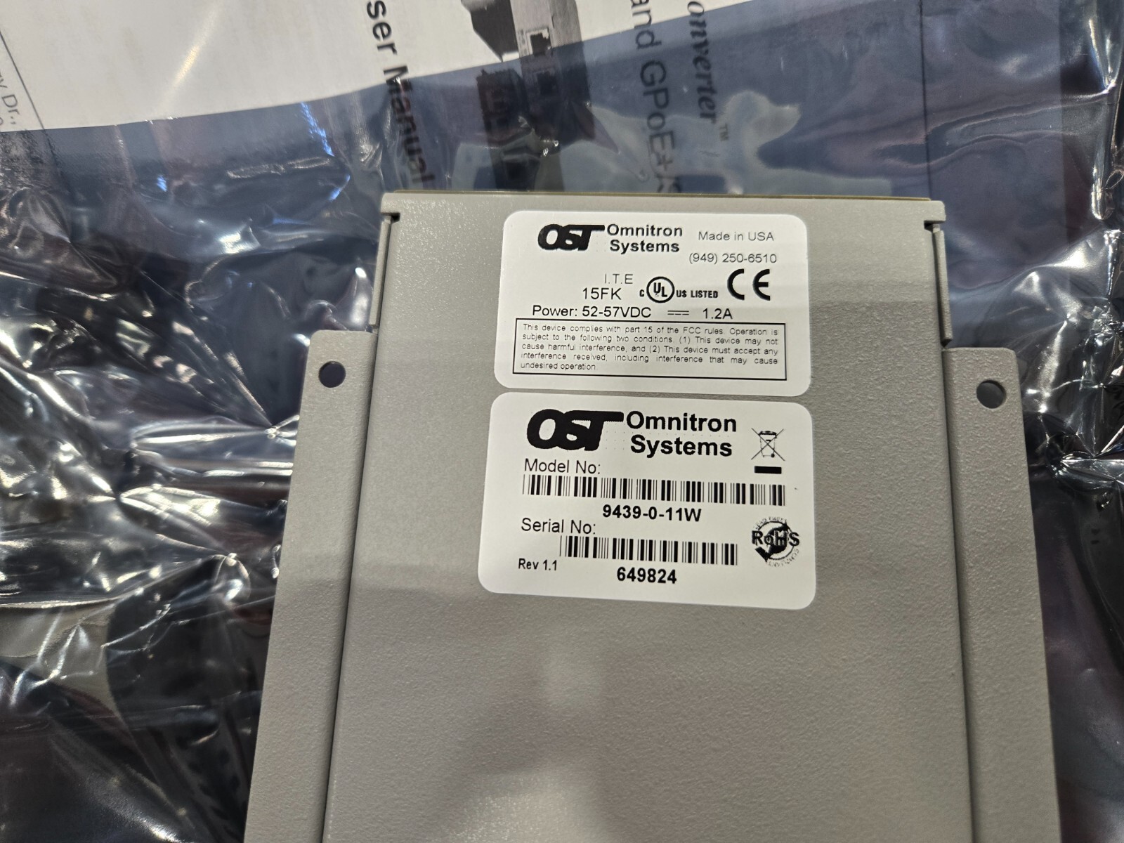 OMNITRON 9439-0-11W gig Ethernet ge PoE+ to fiber SFP Media converter 9439